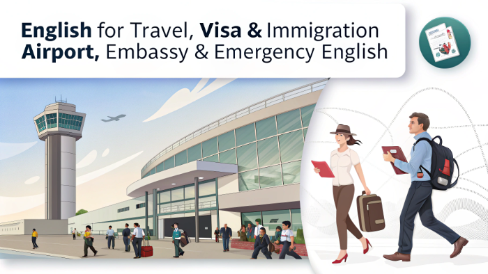 Traveling, applying for a visa, or dealing with immigration requires clear communication in English. This guide helps you learn English for travel, airports, embassies, and emergency situations using simple lessons and practical vocabulary.